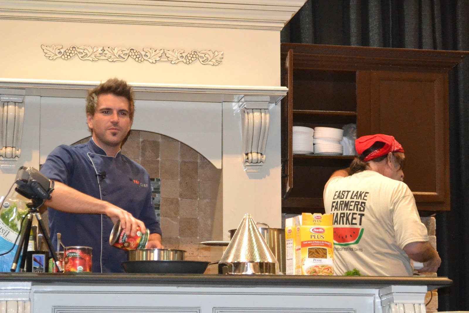 A few weekends ago I went to the Birmingham Home and Garden Show. There was a lot of things going on. They had a ton of exhibitors. My favorite part was the cooking stage. The first chef I saw was Chef Baldwin from Dyron's Lowcountry. He made crawfish cakes that were really good. He was from Mobile he talked about crawfish boils and Mardi Gras. The next show was Roxanne a radio host. She made an instant pudding dessert and was funny to watch. The last cooking demonstration I watched before heading back home to Tuscaloosa was Top Chef Chris Crary. He cooked a turkey meatball pasta. It was delicious. Franklin Biggs assisted Chris Crary.